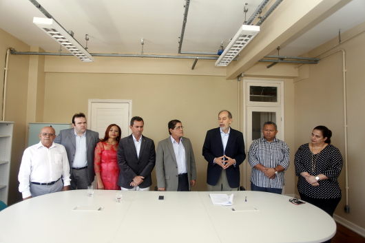 Participaram da solenidade de assinatura do acordo de cooperação os pró-reitores de Ensino e de Administração do IFCE, Reuber Saraiva e Tassio Lofti,; a assessora pedagógica do IFCE para Implantação de Novos Campi, Mirian Brasil; o assessor do IFCE para Implantação do Campus Pecém, Orlando Medeiros; e a coordenadora de Modernização e Inclusão Digital da Secitece, Marta Menezes.