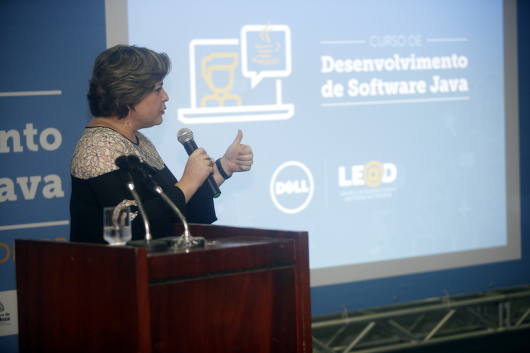 A vice-Governadora Izolda Cela, ao lado secretário da Secitece Inácio Arruda, abriram a solenidade, destacando esta grande ação de inclusão e promoção de pessoas. “O curso oferece novas ferramentas e conhecimento para que todos tenham condições de competir no mercado de trabalho”, disse, ressaltando também a importância de, das parcerias. “Só teremos força de ampliar os desafios quando nos unimos com outras instituições públicas e com a empresa privada”, afirmou Izolda Cela, acrescentando a importância do trabalho da Dell Computadores para a inclusão de jovens, através desse curso de Desenvolvimento em Java que está começando.