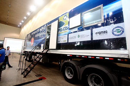A unidade móvel para o abate e beneficiamento da tilápia, desenvolvida pela empresa cearense Piscis Indústria e Comércio, foi uma das atrações da 20ª Pecnordeste, realizada de 20 a 23 junho, no Centro de Eventos do Ceará. O projeto foi viabilizado pela Secretaria da Ciência, Tecnologia e Educação Superior (Secitece), por meio do programa Tecnova-CE, com aporte do Fundo de Inovação Tecnológica (FIT) e da Financiadora de Estudos e Projetos (FINEP).