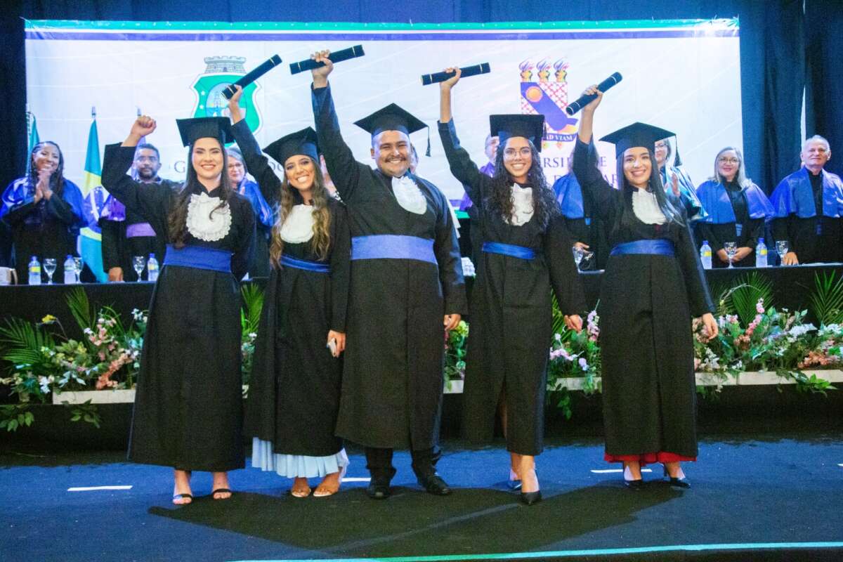 A Universidade Estadual do Ceará (Uece) realizou esta semana as solenidades de Colação de Grau para os concludentes do semestre letivo 2023.1 das unidades de Fortaleza. Os eventos contaram com as presenças da secretária da Ciência, Tecnologia e Educação Superior, Sandra Monteiro, e do reitor da Uece, Hidelbrando Soares, além de professores, servidores e demais autoridades.