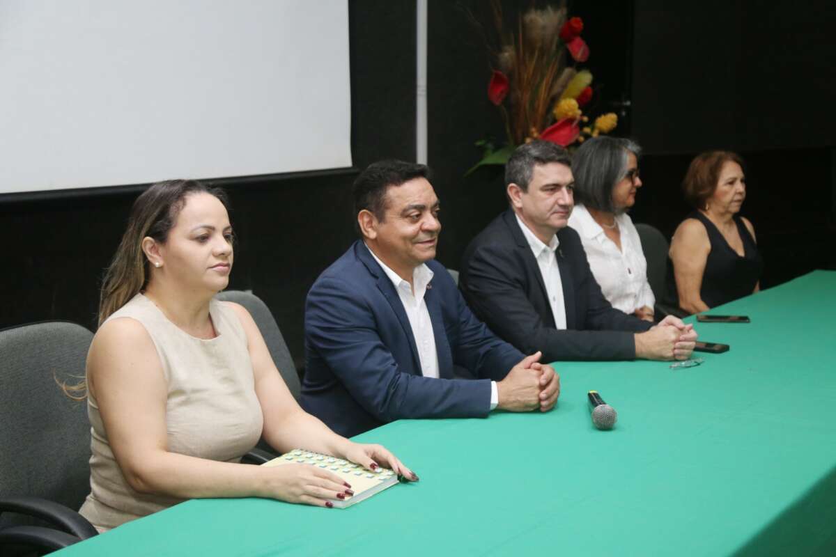 Compuseram a mesa de abertura da cerimônia a secretária em exercício da Ciência, Tecnologia e Educação Superior, Adeline Lobão; o reitor da Universidade Estadual do Ceará, professor Hidelbrando Soares; o vice-reitor da Uece, professor Dárcio Teixeira; o chefe de gabinete da Reitoria, professor Altemar Muniz; a pró-reitora de graduação, professora Mazza Maciel; e a diretora do Departamento de Gestão de Pessoas da Uece, servidora Mazé Barbosa.